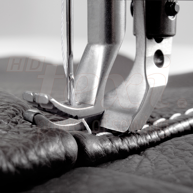 1-Nadel Steppstichmaschine mit Dreifachtransport, mit einem einstellbaren Obertransporthub und großem Greifer. Ausgestattet mit einem energiesparendem AC Servo Motor 220-240 V mit einer Leistung von 750 W sowie Nadelpositionierung (oben - unten). Entwickelt für die Industrie. Zum Nähen von schweren und sehr schweren Stoffen. Ideal für Polsterer, Täschner, Hersteller von Lederbekleidung, Autositzen (Automotiv) usw.