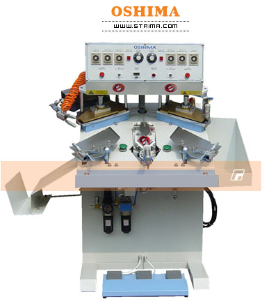 Der genähte Kragen muss auf die Metallform gezogen werden. Als nächstes schneiden die auf die Kragenform einstellbaren pneumatischen Messer das überschüssige Material ab. Danach drückt der pneumatische Finger die Kragenspitze aus und die Bedienperson stürzt den Kragen auf die rechte Seite. Zuletzt wird der Kragen auf eine Form geschoben und wird durch den Einfluss von Druck und Temperatur in seine Form gebracht [gebügelt]. Zeit, Druck und Temperatur werden elektronisch kontrolliert. Die Maschine ist mit einer pneumatischen Auslösevorrichtung ausgestattet, die den Arbeitsgang auf Kragenaufstecken und dessen Entnehmen nach dem Bügeln reduziert. Leistung: 180-200 Teile pro Stunde, Anschluss 230V, 1,6 KW, max. Arbeitstemperatur 180°C. Druckluft von 5bar erforderlich.